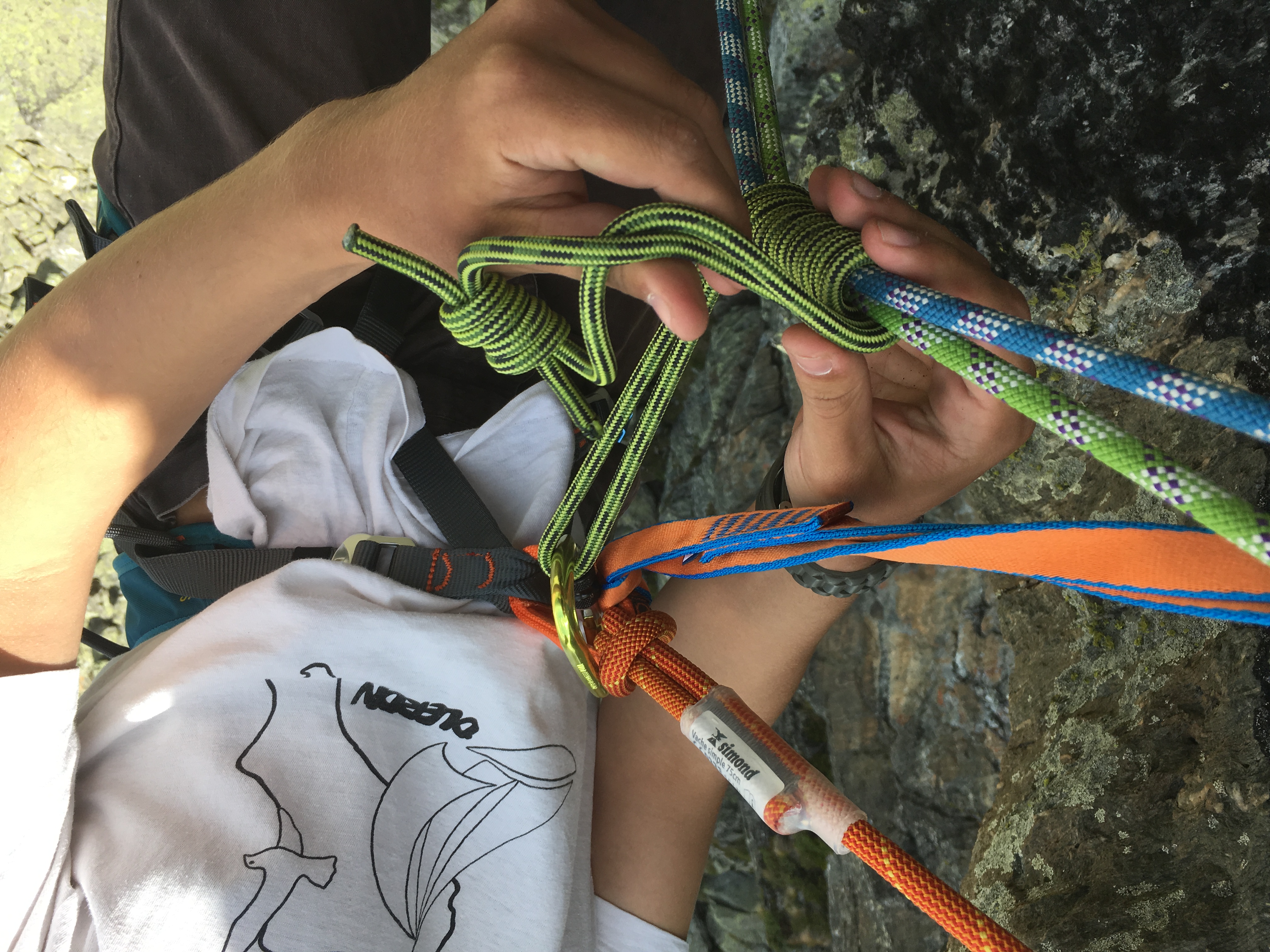 ◦ Un pantalon assez solide pour supporter les frottements contre le rocher, si possible synthétique pour vite sécher. Les jeans et pantalons épais en coton sont à exclure.